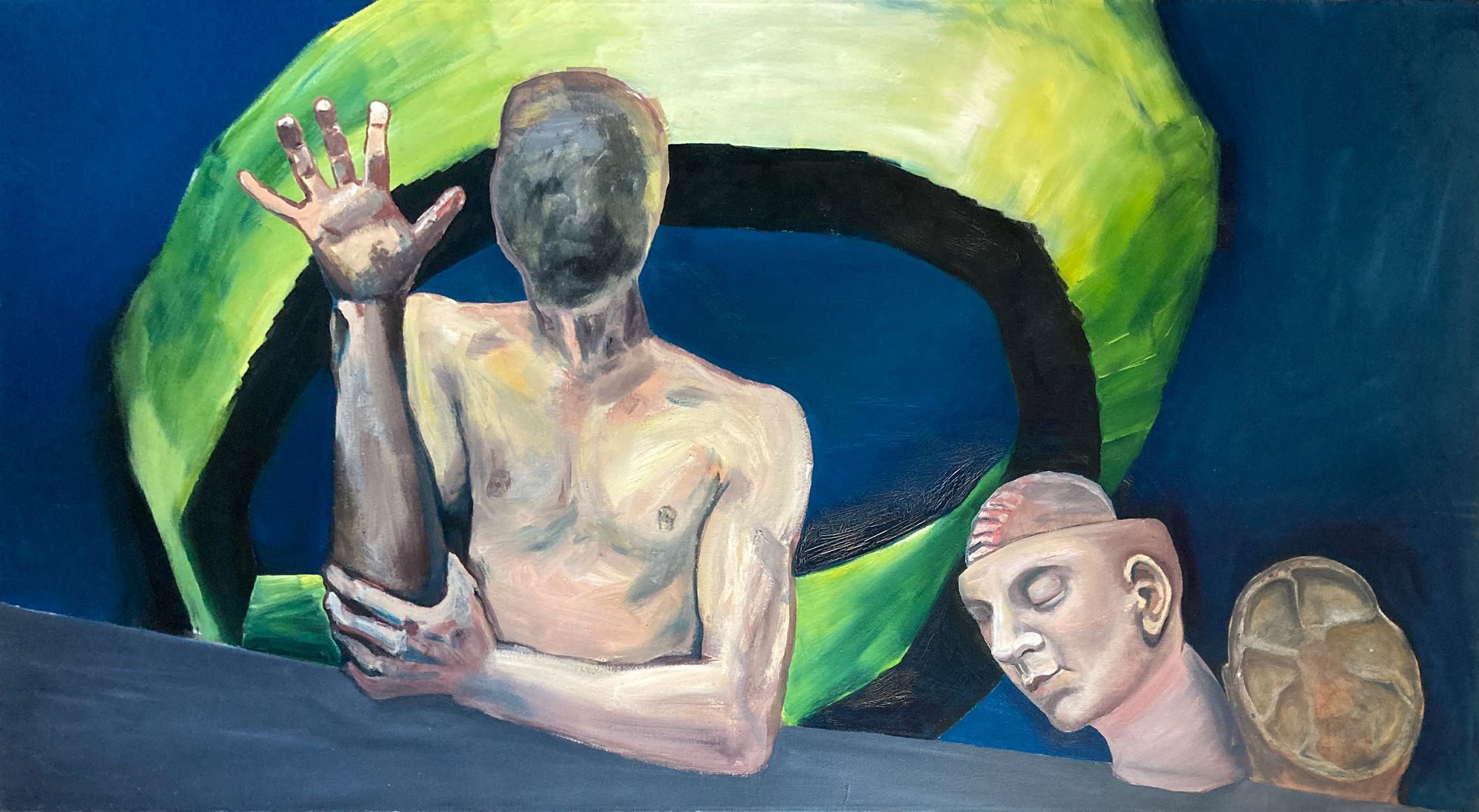 Dazu malte ich sechs Ölbilder, die sich inhaltlich diesem Thema mit je einem besonderen Schwerpunkt annäherten: Was war am Anfang? Das Wort - oder das Bild?; sozialer Tod oder Hirntod - als ein mögliches Ende von Kommunikation; die Digitalisierung von Bild und Ton usw.